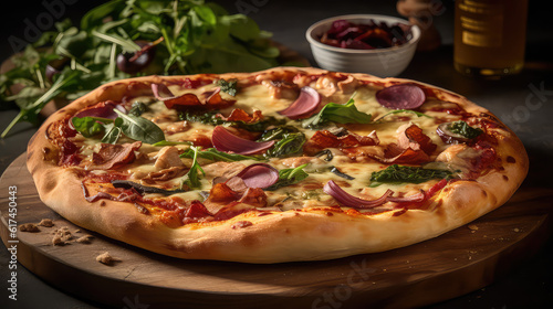 Gourmet Pizza: A Fusion of Premium Ingredients with Onion and Mushroom Delight