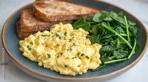 Gourmet Scrambled Eggs with Spinach and Toast: Culinary Delight in 8K UHD