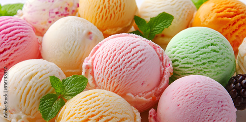Gourmet summer dessert ice cream. Ice cream scoop on waffle cone commercial advertising photo