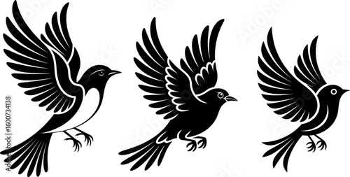 Graceful black silhouette of birds in flight with spread wings, ideal for nature logos, tattoos, and decorative wall art
