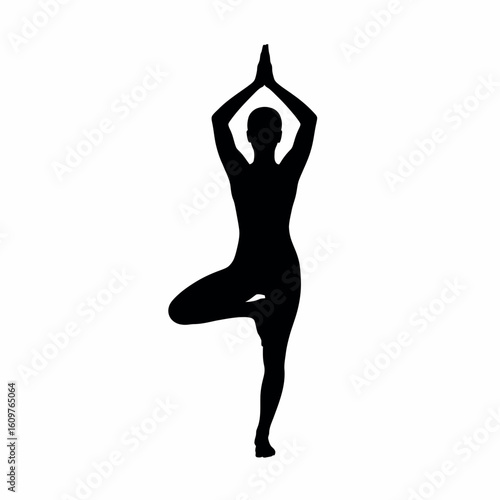 Graceful Tree Pose Yoga Silhouette Vector for Health, Serenity, and Spiritual Designs with Balanced Posture and Inner Harmony