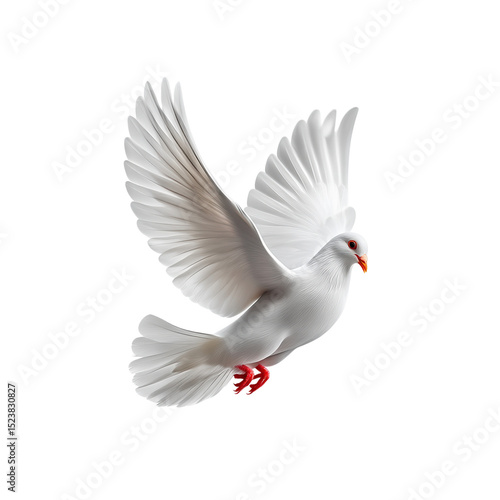 Graceful White Dove in Flight against Black Background
