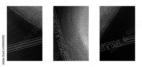 Gradient Brutalist Composition. Abstract posters with effect of falling grains of sand in style y2k brutalism pixel on a black background.