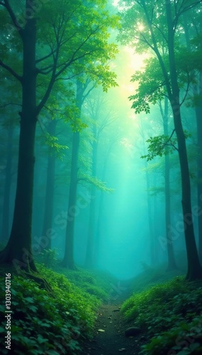 Gradient of soft blue and green blending into the trees, blue, forest