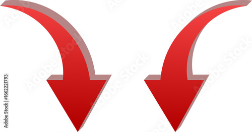 Gradient red 3D Double Down Arrow Icon Isolated on Transparent Background