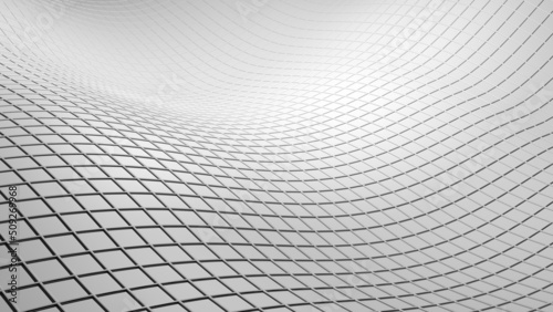 Gradient White Mathematical Geometric Abstract Line and Surface Wave under Spot Lighting Black Background. Concept image of technological innovations, strategies and revolutions. 3D CG.
