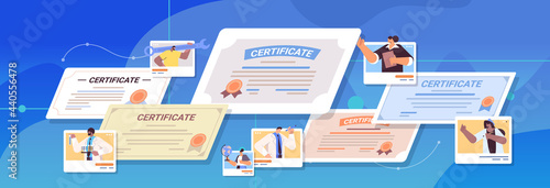 graduated people holding certificates graduates celebrating academic diploma degree education concept