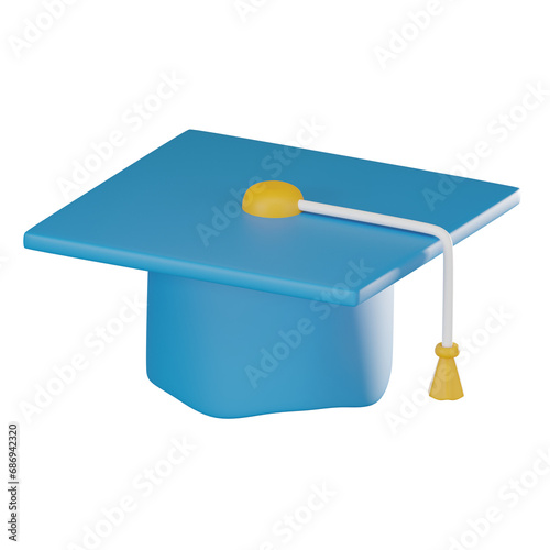 Graduation Cap Icon , Academic Success and Achievement Symbol. 3D Render