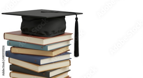 Graduation Cap on Stack of Textbooks