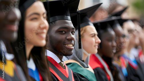 Graduation Day: A Diverse Row of Happy Graduates in Cap and Gown