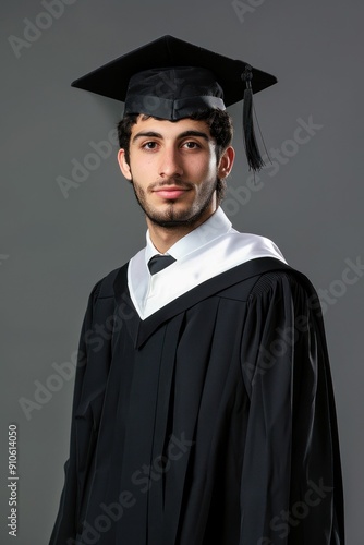 Graduation portrait of young male student in cap and gown, academic achievement concept