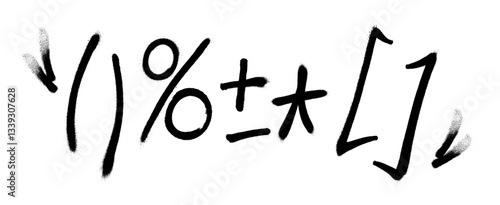 Graffiti spray font alphabet. Signs. Part 8. Vector illustration
