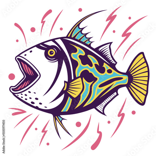 Graffiti Style Triggerfish Vector Illustration with Bold Colors and Urban Art Design
