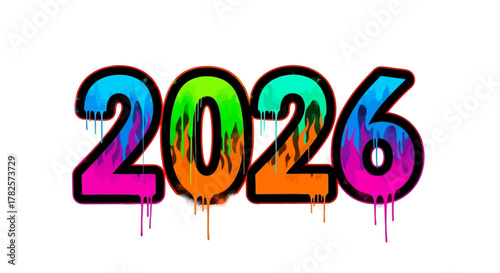 Graffiti style year 2026 text with dripping paint effect