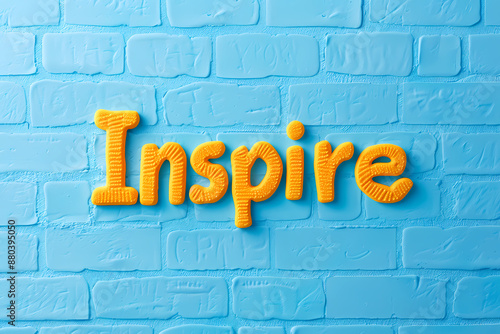 Graffiti-style "inspire" text on a brick wall, vibrant, contrasting colors