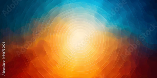 Grainy background glowing vibrant color design, gradient blue orange red black circle ring noise texture banner poster design