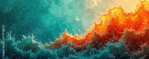 Grainy textured background, abstract orange-teal wave, stylish, pattern