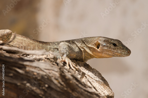 Gran Canaria giant lizard Gallotia stehlini. Integral Natural Reserve of Inagua. Tejeda. Gran Canaria. Canary Islands. Spain.