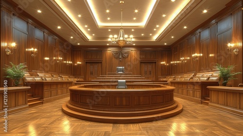 Grand Courtroom Interior Design: Mahogany Elegance
