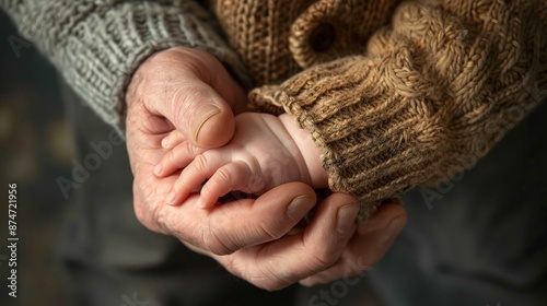 Grandfather holding grandchild's hand showing love and family