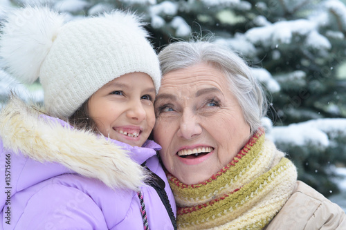 grandmother with granddaughter smiling
