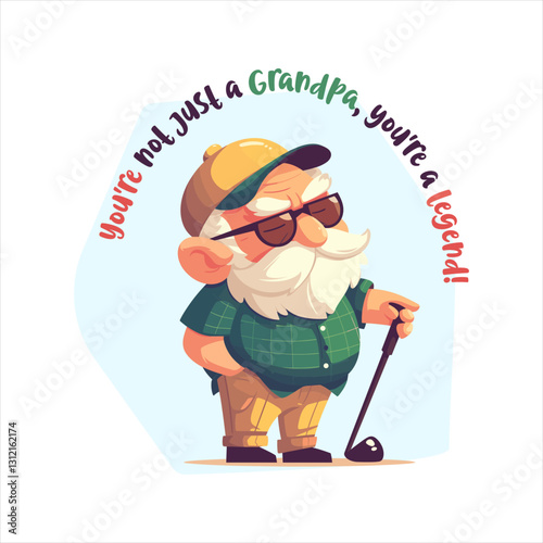 Grandpa Illustration with Humorous Quote and Golf Club. vector illustration of a cheerful elderly man with a golf club, wearing sunglasses and a cap, accompanied by a playful quote about grandpas