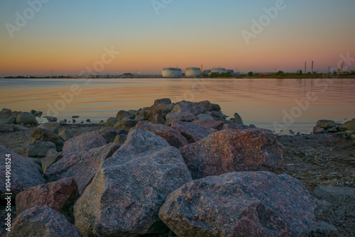 Granite rocks on the shore of the Gulf of Finland at sunset