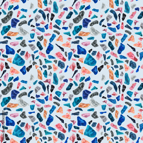 Granite, Terrazzo & Tile. Terrazzo seamless pattern. Vibrant colors. Textured shapes. Granite textured shapes in vibran. Hand drawn Patterns. Colorful hand drawn design for textiles, dishes, surface.