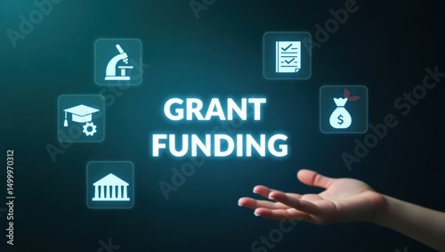 Grant funding concept with various icons.