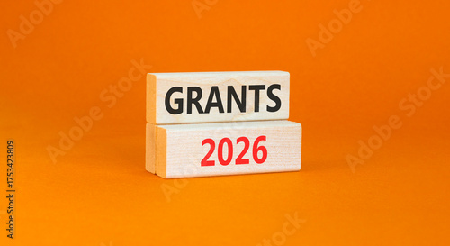 Grants 2026 symbol. Concept words Grants 2026 on beautiful wooden blocks. Beautiful orange paper background. Business and grants 2026 concept. Copy space.