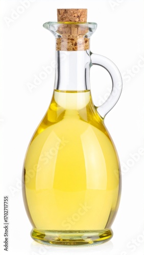 Grapeseed Oil in Glass Bottle on Isolated White Background – Light Pressed Oil with Pale Yellow Hue and Glossy Surface