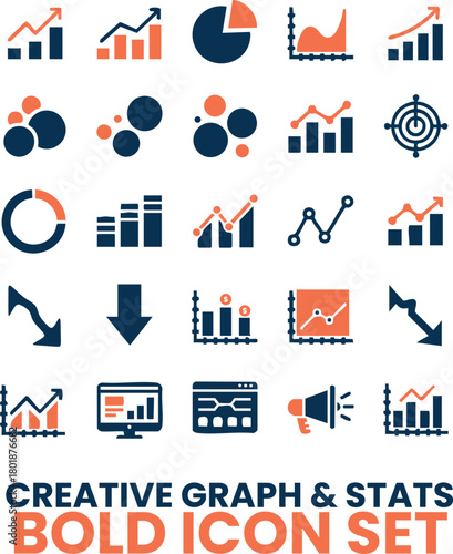Graph and Statistics Icon Set Minimal Infographic and Dashboard Symbols