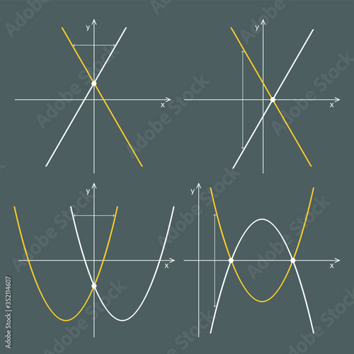 Graph of quadratic and linear functions on a dark background. Graphic presentation for math teachers.
