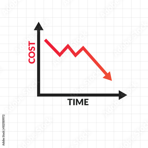 Graph showing reduction in cost over time flat vector design