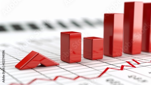 Graph with bars declining in height and a downward arrow, isolated on white background, business downturn, highquality stock photo
