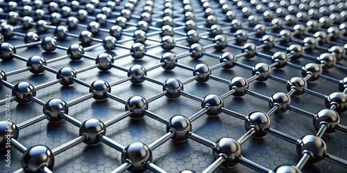 Graphene surface with black atoms and carbon bonds creating a glossy structure, glossy surface