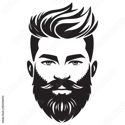Graphic Black and White Vector Illustration of Man with Stylish Hair and Beard