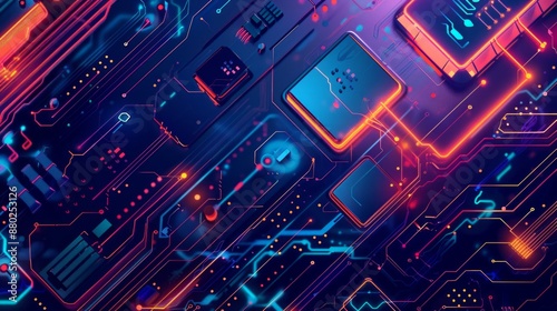 Graphic design background of tech scene or neon blue purple tone. Modern abstract background