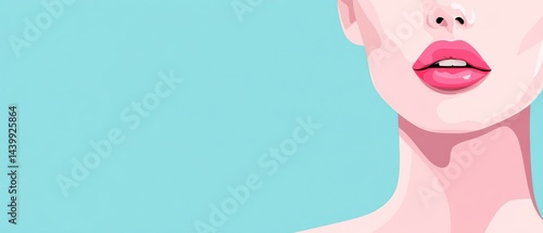 Graphic illustration of a fairskinned woman with pink lips on a light blue background Concept of beauty, fashion, and cosmetics