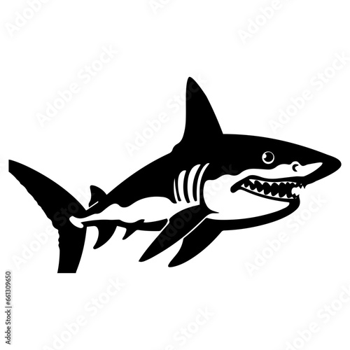 Graphical hand-drawn sharks isolated on white background, vector illustration
