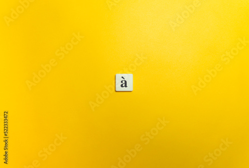 Grave Accent Diacritical Mark on Letter Tile on Yellow Background. Minimal Aesthetics.