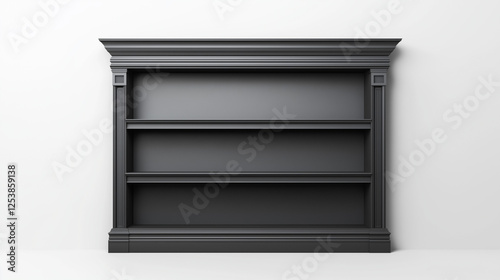 gray wooden empty bookshelf with multiple compartments isolated on white background