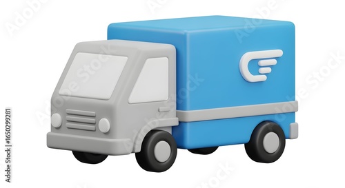 Gray and Blue Cartoon Delivery Truck with Simple Shapes