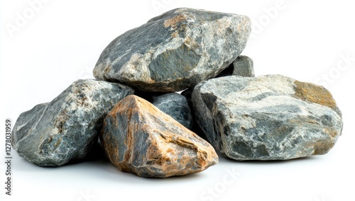 Gray and brown rocks pile against white background