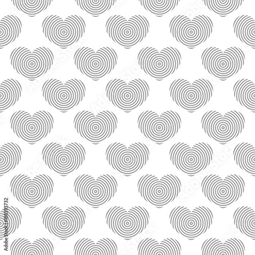 Gray and white heart symbols as seamless pattern. Romantic background