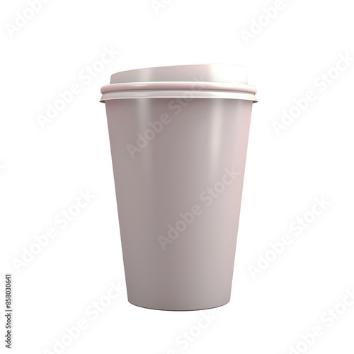 gray disposable paper cup with paper lid viewed from the front against a transparent background