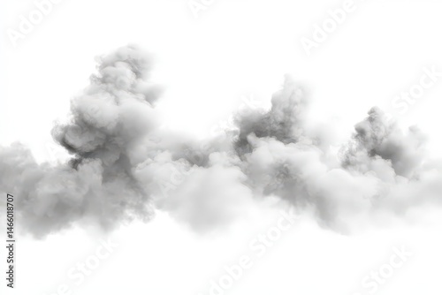 Gray, fluffy, cloud-like smoke formations against a white background.
