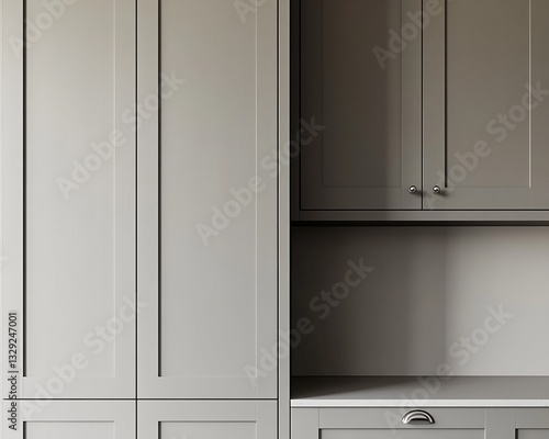 Gray Kitchen Cabinetry with Countertop and Upper Cabinets