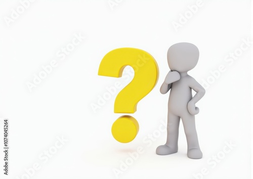 gray man 3d model thoughtful next to him question mark