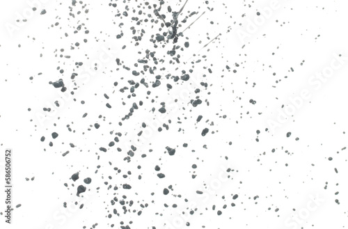 Gray paint liquid fly in mid air. Grey Mud dirty water color soil falling scatter, explosion float in shape form droplet line. White background isolated freeze motion high speed shutter